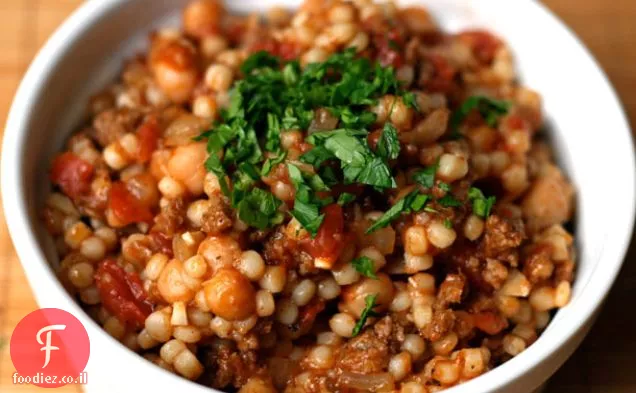 יוצקים את העגבניות, החומוס, ומים. מביאים לרתיחה ומבשלים במשך 5 דקות, ולאחר מכן מוסיפים את הצ ' וריסו ואת cous ואת העונה לפי הטעם עם מלח. מבשלים עד coos מבושל דרך ונוזל נספג (בהתאם לגודל ולמותג של cous, יותר מים עשויים להיות נחוצים). אפשר להתקרר קצת לפני ההגשה.