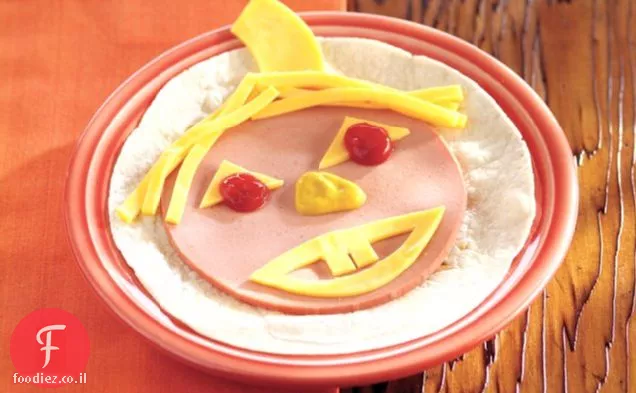 צור "פנים" באמצעות חתיכות סינגלים, חרדל וקטשופ.
