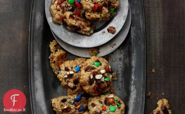 באמצעות מרכך בשר למחוץ M & M בייגלה בשקית ניילון ולהוסיף בצק עוגיות לקפל לשלב.