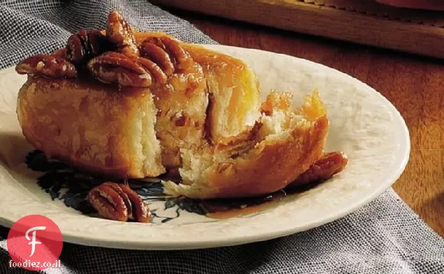 גלילי קרמל-פקאן דביקים (קלים יותר ) עשויים להיות רק הלחם שאתם מחפשים. חלק אחד של המנה הזאת מכיל בערך 4 גר' של חלבון, 7 גרם של שומן, וסך הכל 204 קלוריות. המתכון הזה מכסה %6 מהצריכה היומית המומלצת של ויטמינים ומינרליים. והוא יספק כ 15 מנות. אם יש לכם מרגרינה, סוכר חום, מרגרינה, וקומץ של מרכיבים אחרים הם כל מה שנדרש כדי להפוך את המתכון הזה לכל כך טעים. זמן הכנת המתכון כ 3 שעות ו-15 דקות. מתכונים דומים: גלילי קרמל-פקאן דביקים, לחמניות קינמון קרמל פקאן דביקות, ו קרמל אגוז דלעת גלילים דביקים עם King ' s Hawaiian® Dinner Rolls # KHHolidayRollCall.