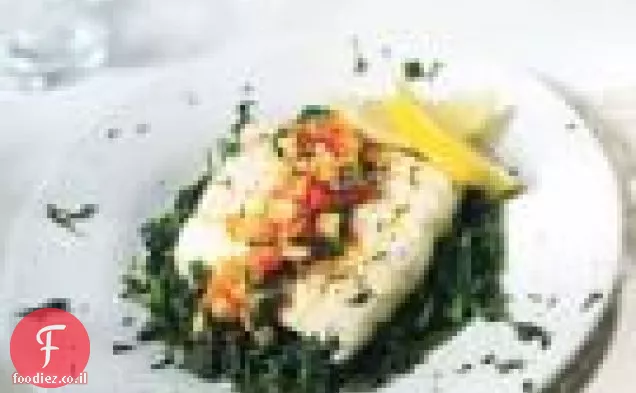 הליבוט בניחוח זעפרן עם תרד, קישואים ועגבניה