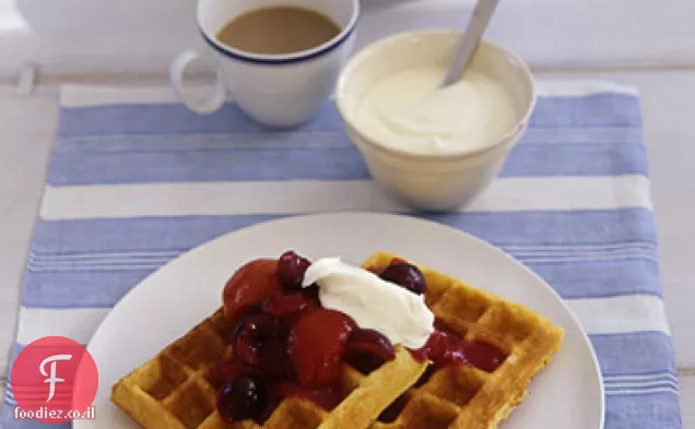 וופלים קמח תירס עם קומפוט משמש-דובדבן