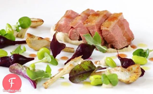 ישבן צלוי בתנור של כבש עם ארטישוק תינוק, סלק ושומר