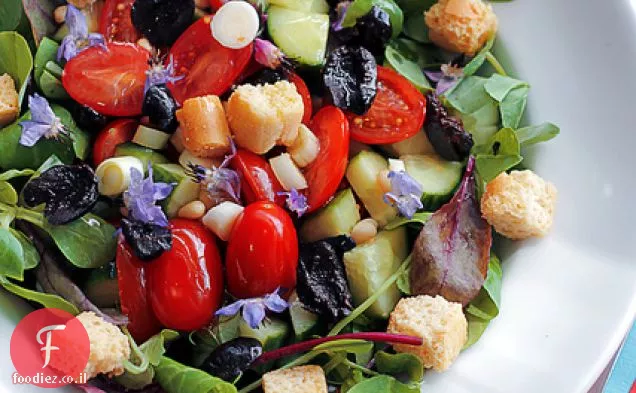 עגבניות, מלפפון ופרחים Borage עשוי להיות התוספת שחיפשתם. ואינו מכיל גלוטן,, חלב חינם, ואת כל 30 מתכון מגיש 1 . מנה אחת מכילה 203 קלוריות, 2 גר' של חלבון, ו 18 גרם שומן. גשו לסופר וקנו עלים, מלפפון, של קרוטונים, ועוד מספר מצרכים כדי להכין את המנה הטעימה הזו. זמן הכנת המתכון כ 45 דקות. נסו עוגת שקדים פיות עם פרחים מסוכרים, הירוקים של Sunset Magazine עם אשכולית ורודה ופרחי בורג', ו רוטב סלט מלפפון Borage (מתכונים דומים).