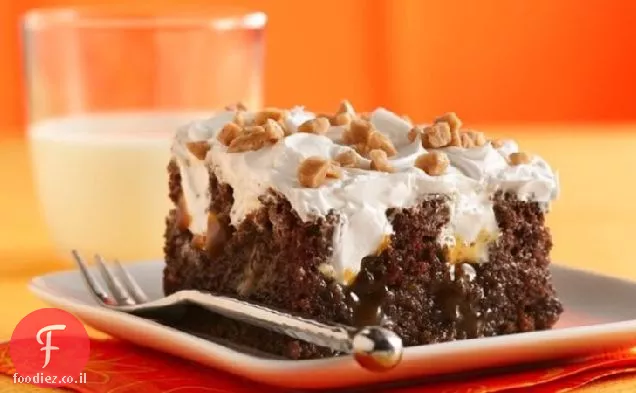 תנור חום עד 177° (325°F למחבת כהה או לא מקל). להכין ולאפות עוגה לפי הוראות על תיבת למחבת 13x9 אינץ'. מגניב 15 דקות.