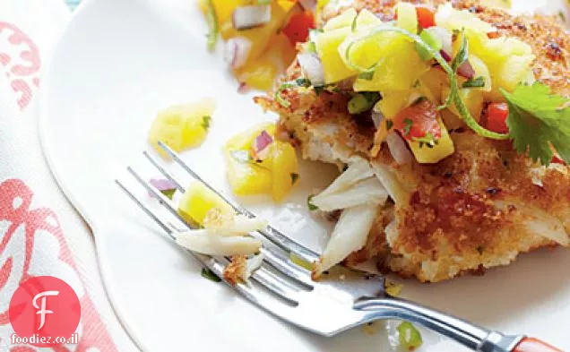 עוגות סרטנים פריכות עם מנגו-סלסה אננס