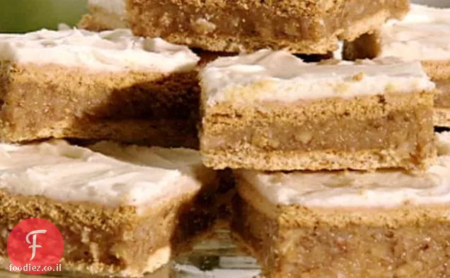 למילוי: מרפדים תבנית בגודל 13 על 9 אינץ ' עם פצפוצי גרהם שלמים. ממיסים את החמאה בסיר ומוסיפים סוכר. מקציפים יחד את הביצה והחלב; מוסיפים לתערובת החמאה. מביאים לרתיחה תוך ערבוב מתמיד.