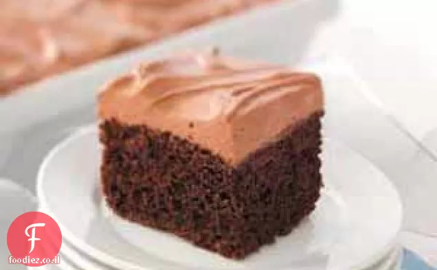 עבור זיגוג, בקערה קטנה, לטאטא חלב תערובת פודינג במשך 1 דקה. בקערה קטנה מקציפים גבינת שמנת וחמאת בוטנים לתערובת אחידה. מקציפים בהדרגה פודינג. מקציפים פנימה מחצית מהציפוי המוקצף; מקפלים פנימה את הציפוי המוקצף שנותר. עוגת פרוסט. אחסן במקרר.