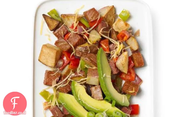 מגישים את הצ ' יפס הביתה עם גבינה, אבוקדו, שמנת חמוצה בצל ירוק.