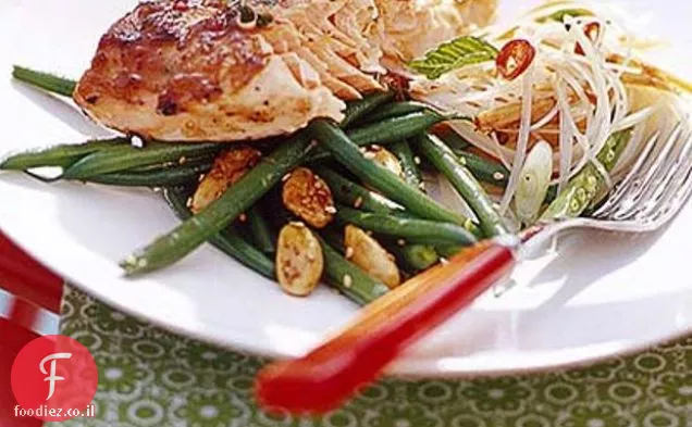 שעועית ירוקה עם שקדים דביקים סויה ושומשום