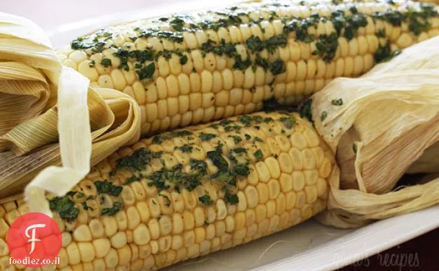 תירס קלוי בתנור עם חמאת כוסברה קלה